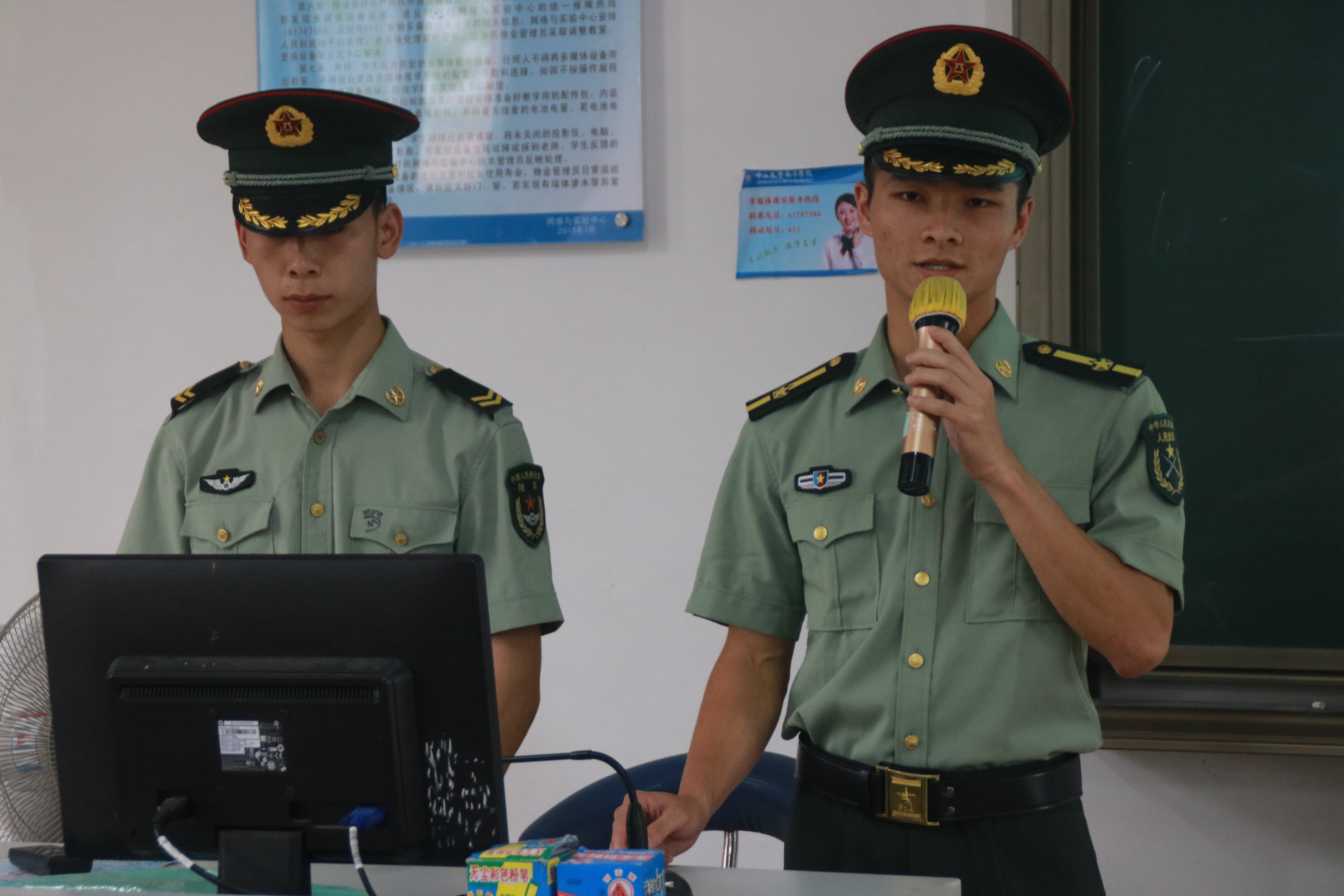 孙培高教官以我国当前面临的严峻的国际形势突出军队的重要性,并讲解中国现役武装力量的组成。为了让同学们更加深入地了解国家征兵政策以及各项参兵事宜,胡洪康教官详细介绍了国家对于老员工参军出台的系列政策,包括老员工服役期间和退伍后的优惠政策。