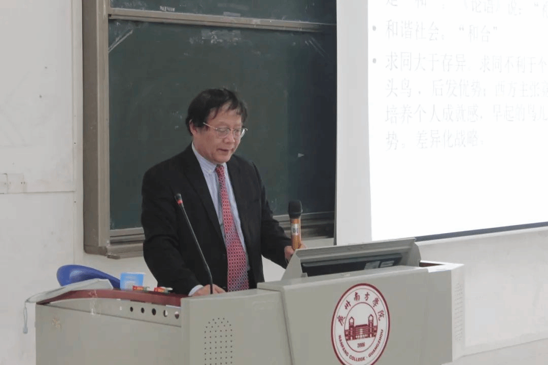 首先,何兴强教授在致辞中向王大树教授的莅临表示了热烈的欢迎和衷心的感谢。他表示,王大树教授不仅为我国经济事业的发展尽心尽力,在东西方文化差异领域也颇有研究,希望同学们能够通过本次讲座,对东西方的文化差异有更好地认识,在开阔视野的同时,更要增强我们的文化自信。
