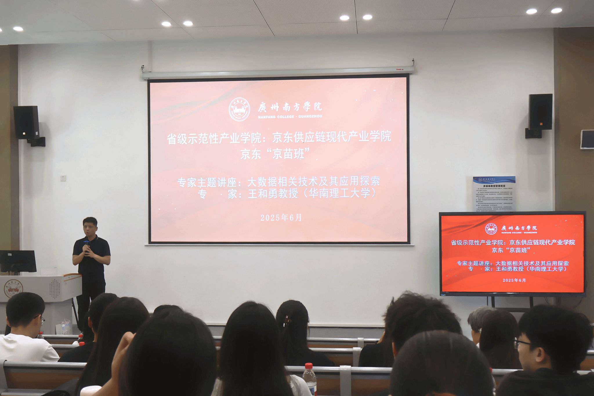 此次大数据及其技术研究与应用探索专家讲学主要是面向京东智能供应链现代产业公司培养京东京苗班一年制学员,深化产教融合战略,创新应用型人才培养机制,投入产教融合实践团队和校企合作软硬件资源,全力打造校企联合实战、实用紧密结合的职业进阶模式培训课程内容。本次讲座为第五届京东京苗班第三次讲座。每年来自太阳城娱乐跨院系物流管理、工商管理、经济学、电子商务、市场营销、金融学、大数据、国际经济与贸易等不同专业在校生通过选拔录取的学员,均免费获得京东智能供应链现代产业公司的进阶培养,最终实现产教融合。