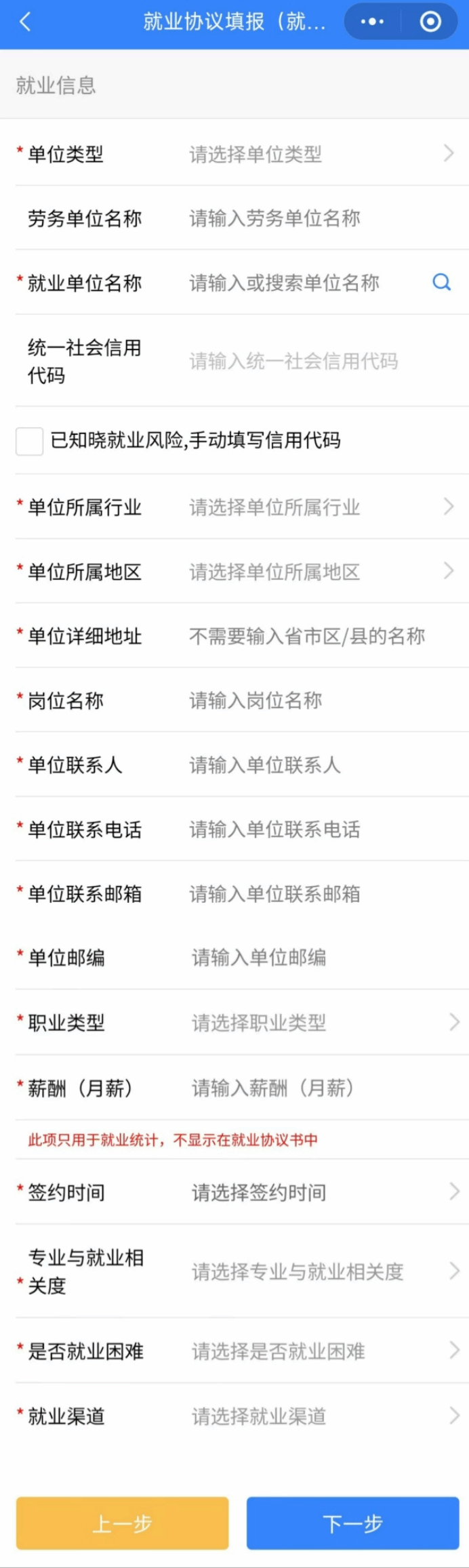 其他字段请根据实际情况如实填写,确认无误后点击下一步。(注:如果遇到不确定的内容,建议和用人单位沟通清楚后再行填报)