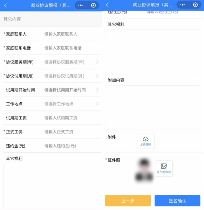 (七)签名确认与就业协议上报